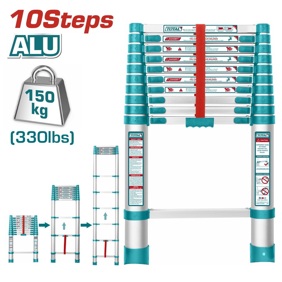Escalera Telescópica de Aluminio TOTAL – 10 Peldaños