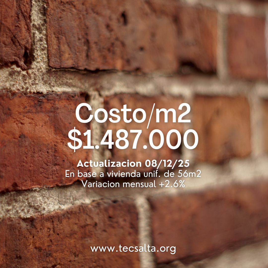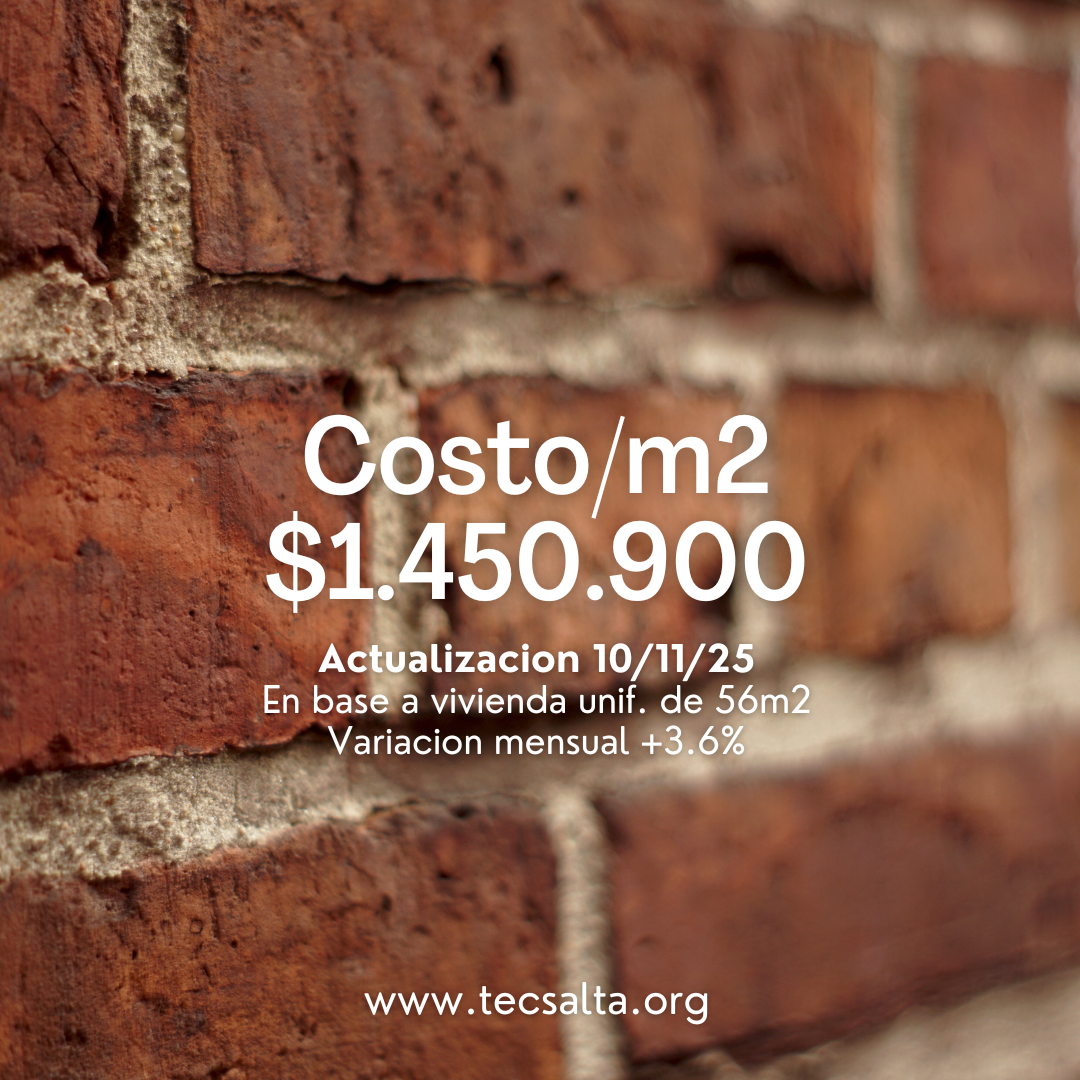 En TecSalta seguimos mes a mes la evolución del costo por metro cuadrado (m²) de una vivienda tipo de 56 m². Este indicador se ha convertido en una herramienta clave para quienes construyen, proyectan o evalúan inversiones en obras civiles.